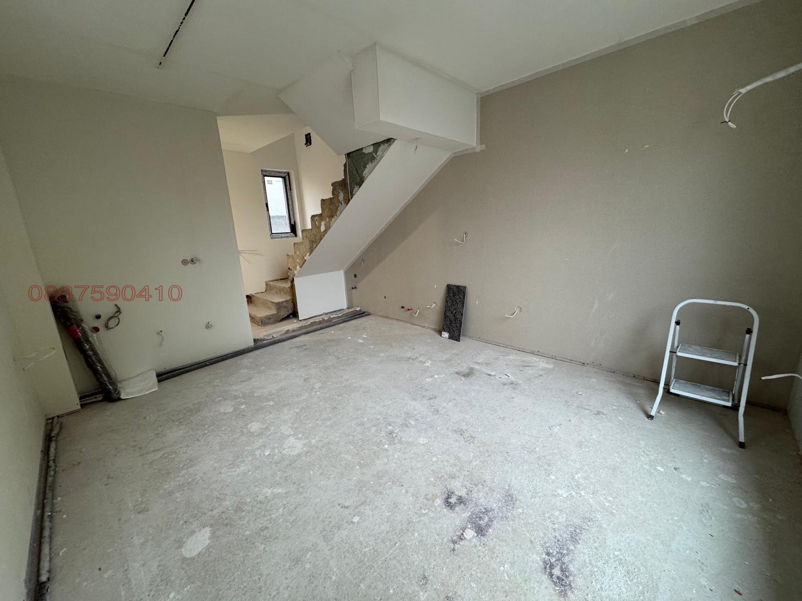 1-ви етаж- коридор пред входа, баня, дневна, кухненски бокс, веранда