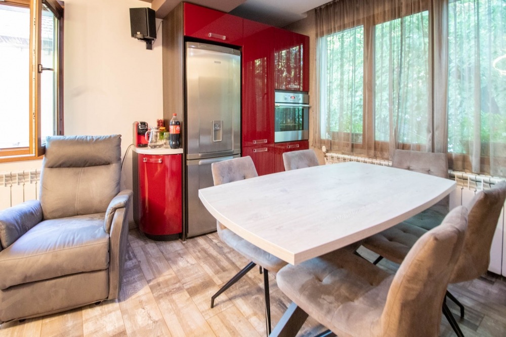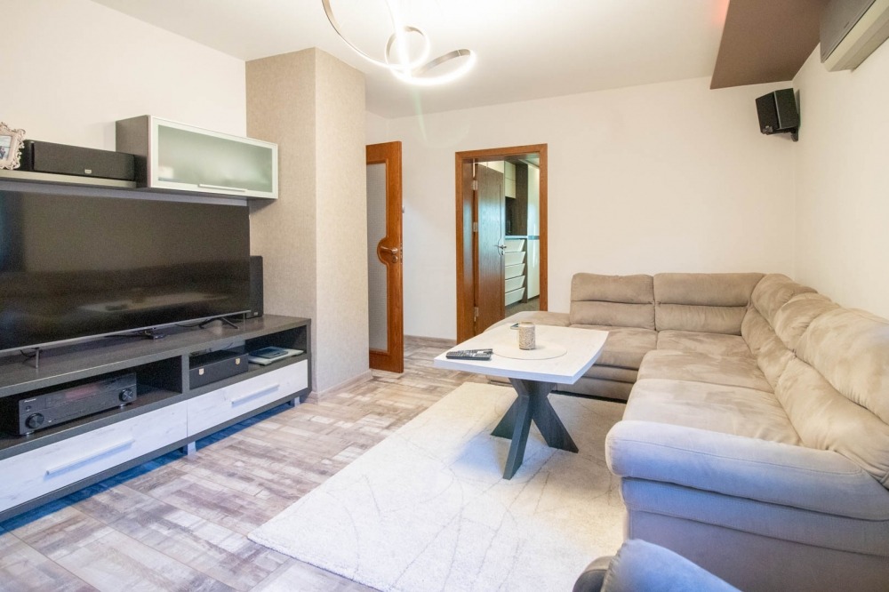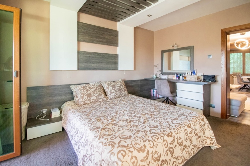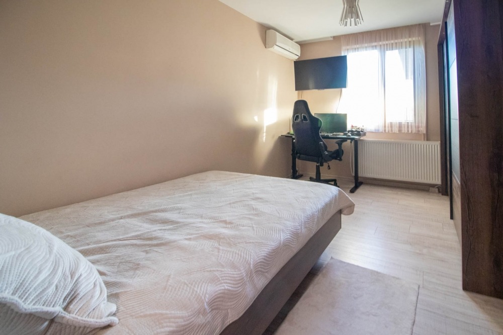 Към апартамента има и таванско помещение, преустроено в трета спалня със собствен санитарен възел - идеално за гости или като отделна родителска спалня.