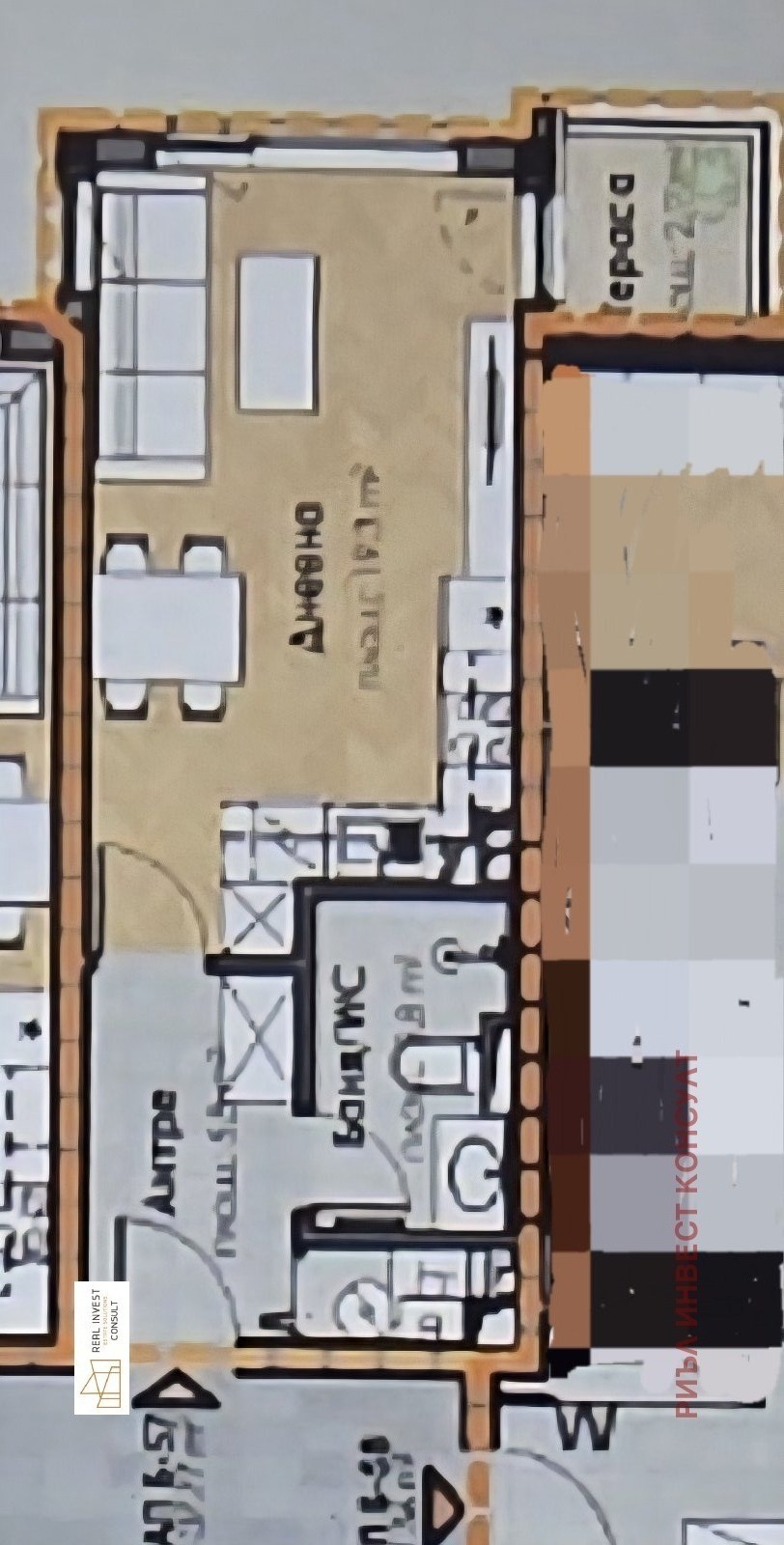 Просторно и правилно помещение с възможност за обособяване на спален кът, Кухненска зона, баня с тоалетна, тераса.