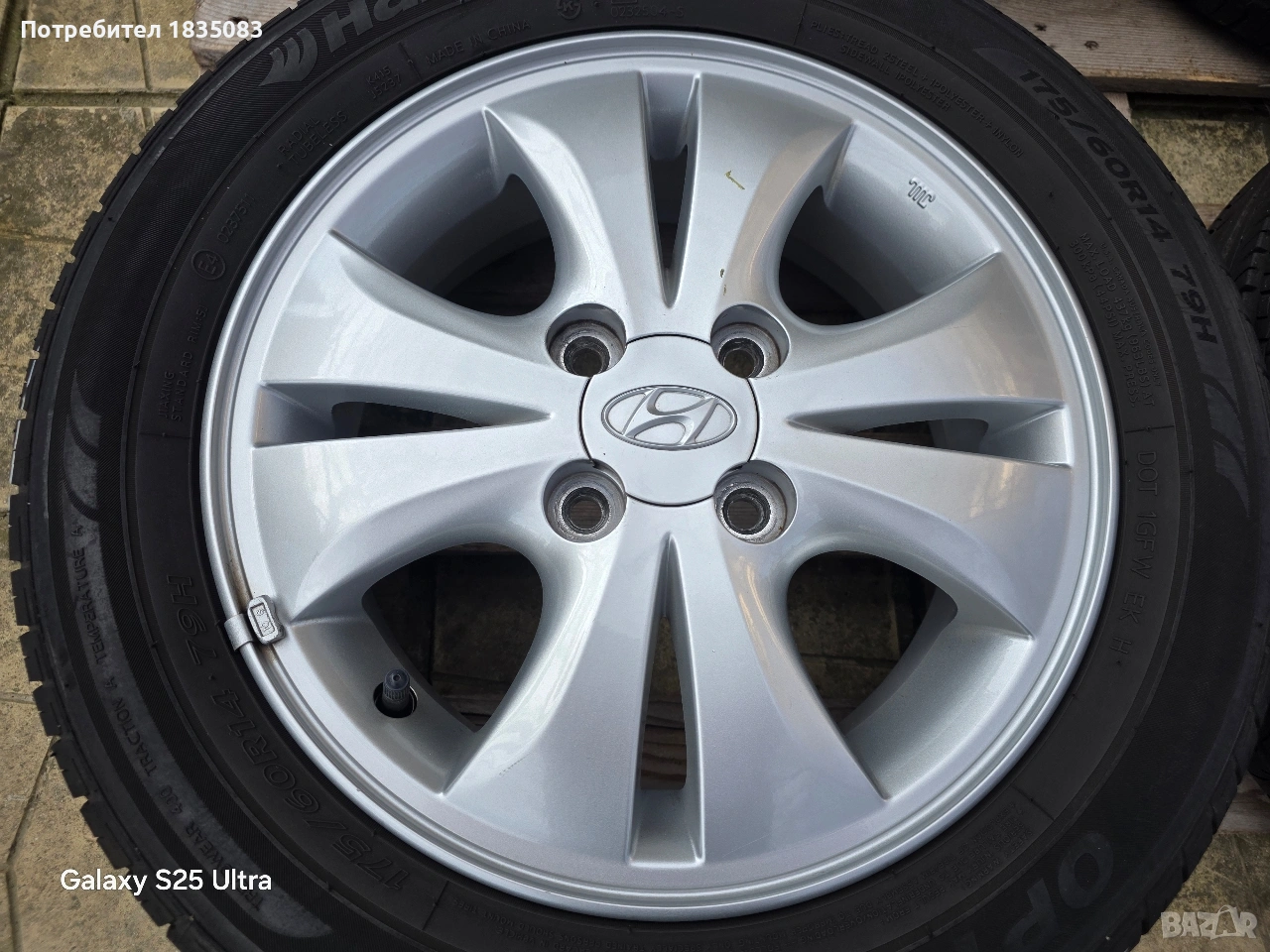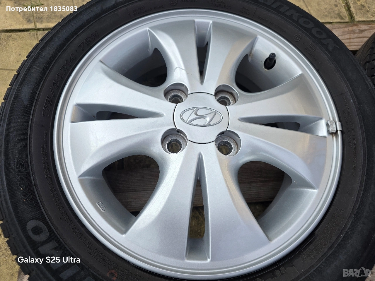 Лети джанти 14ки 4х100 Hyundai + летни гуми 175/60/14 Hankook → Обява 53707165