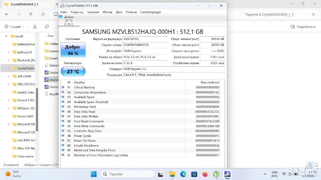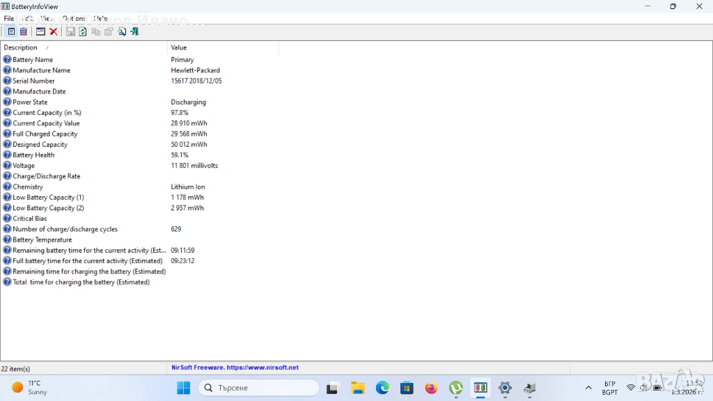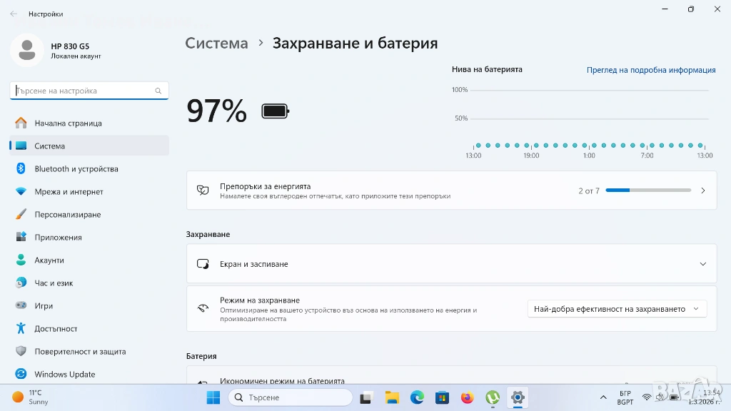 натоварването (батерията е оригинална на 58% здраве което се вижда и на една