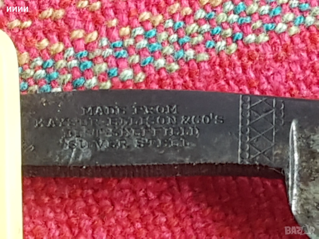 Над 100 годишен, острие от сребърна стомана, с вградена златна насечка. Дръжка от истинска слонова кост, с вградена сребърна набивка. Здрав и годен за ползване.