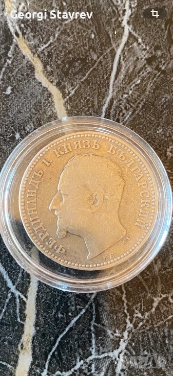 1 лев от 1891 г., емитирана от Княжество България по време на управлението на княз Фердинанд I.