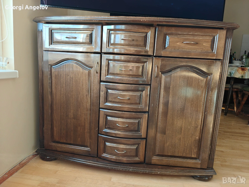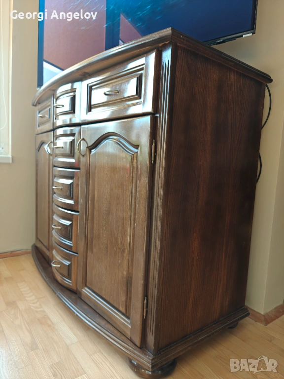 Продавам елегантен скрин с красив заоблен дизайн (извит фронт). Мебелта изглежда много стилно и придава класа на помещението.