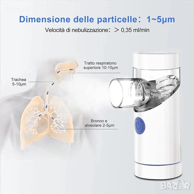 С безшумна ултразвукова аерозолна технология, чрез фини атомизирани частици (<5 микрона), инхалаторът предлага висока ефективност.