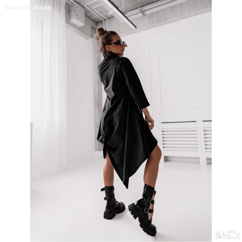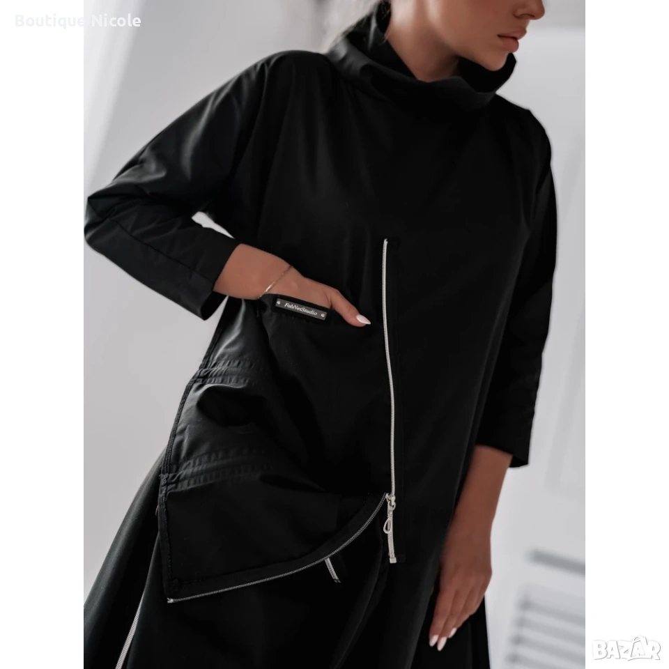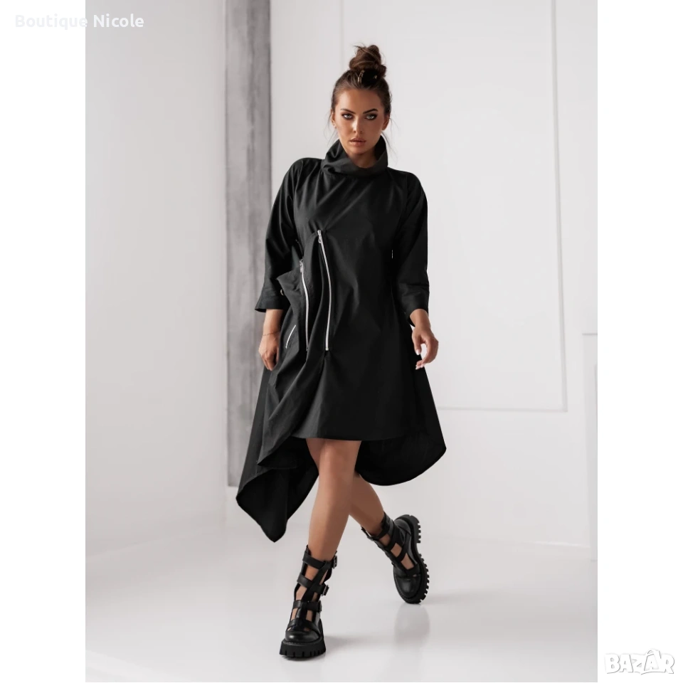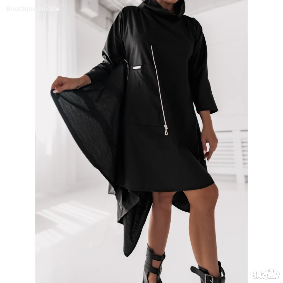 Черна асиметрична рокля с ципове → Обява 53707817