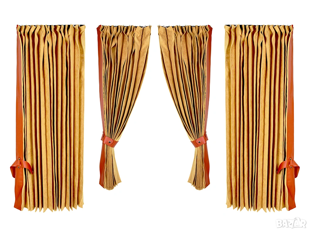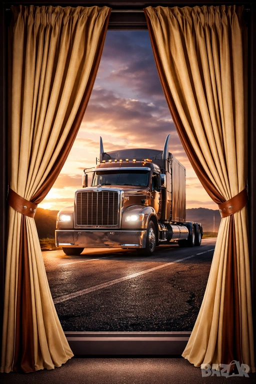 Практичен и стилен комплект пердета за товарен автомобил, състоящ се от 4 части, предназначени за челното стъкло и секцията за отдих в кабината на камиона.