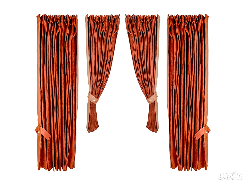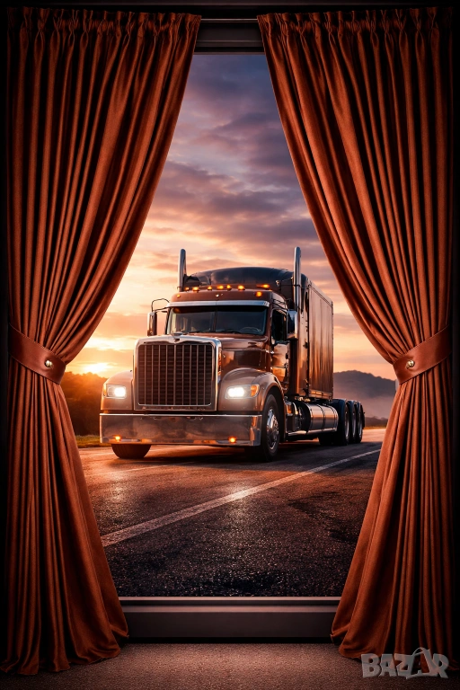 Практичен комплект пердета за товарен автомобил, състоящ се от 4 части, предназначени за челното стъкло и секцията за отдих в кабината на камиона.