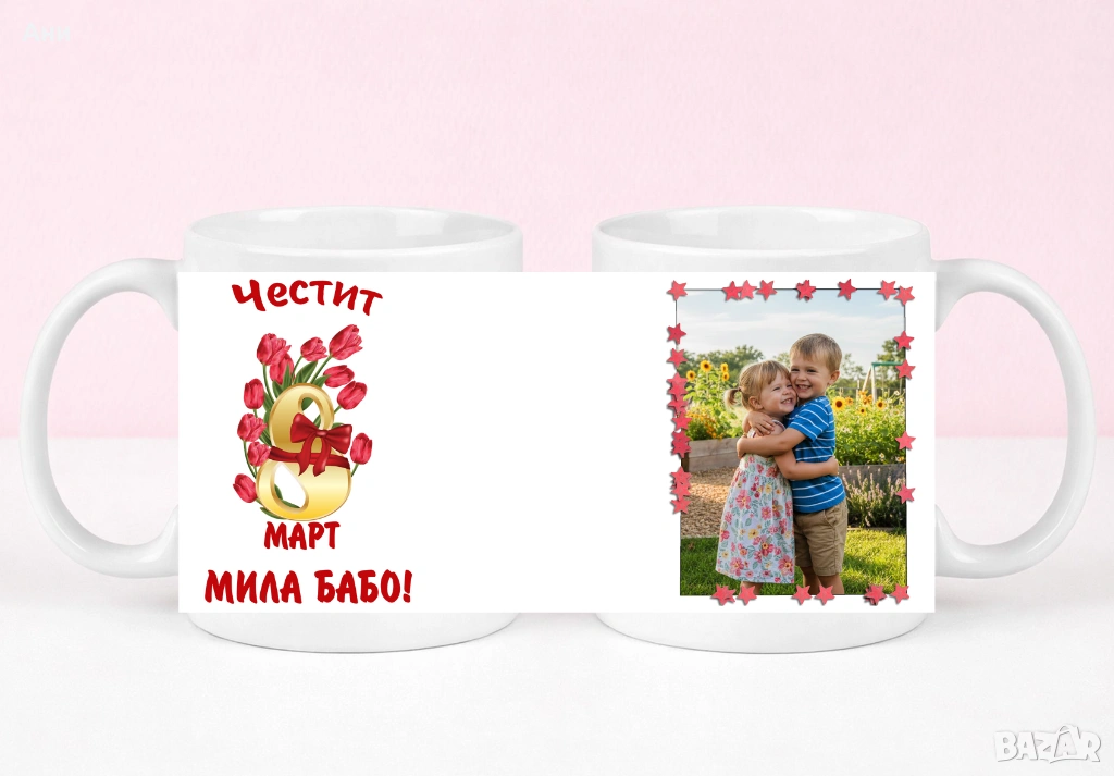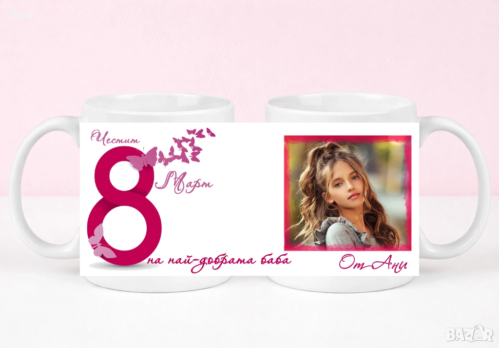 8 Март Персонализирана чаша с ваша снимка и послание → Обява 53708303