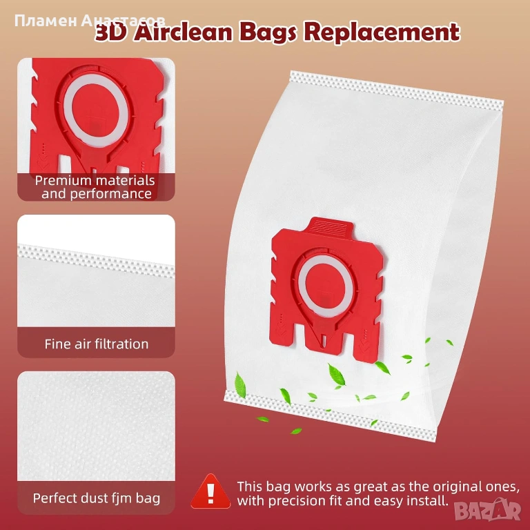 Благодарение на 3D конструкцията, торбичките използват максимално вътрешния обем и позволяват по-голям капацитет за събиране на прах. Това означава по-дълъг период на използване между смените и по-добра ефективност на почистването.