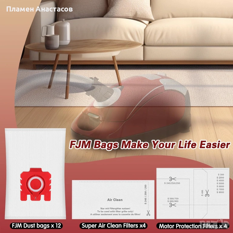Този комплект 12 броя FJM 3D торбички за прахосмукачка е практично решение за поддръжка на вашата Miele прахосмукачка, като осигурява ефективно почистване, добра филтрация и по-дълъг живот на уреда.