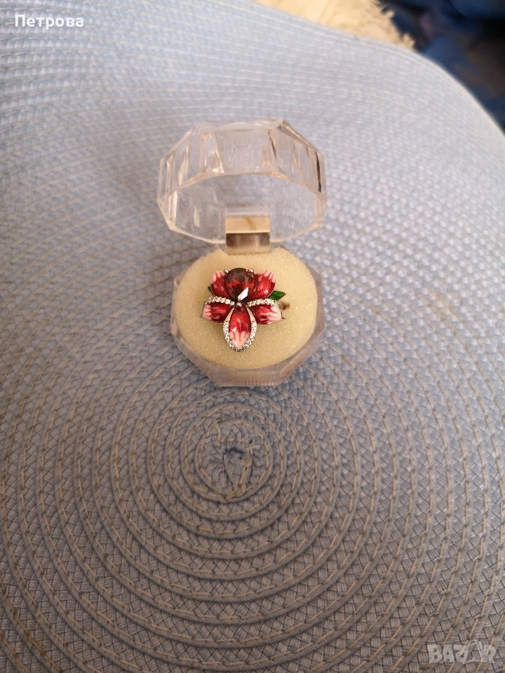 сребърен пръстен с камък-рубин и малки цирконии. → Обява 53708467