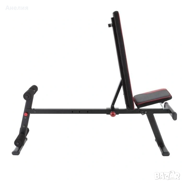 -Стабилна лежанка. Максимално тегло 220 кг (тегло на спортуващия + тежести).
