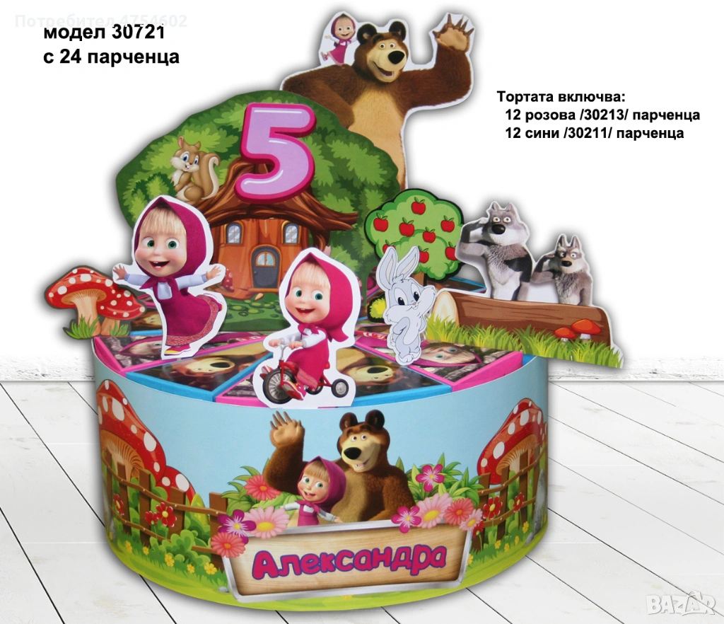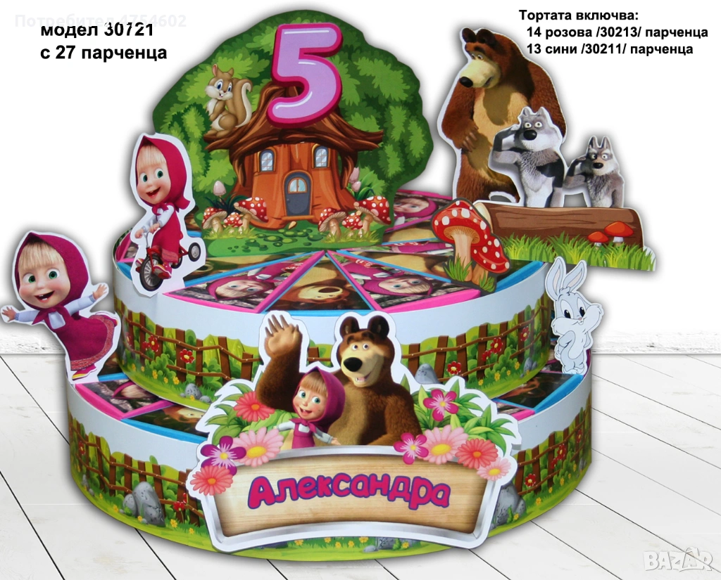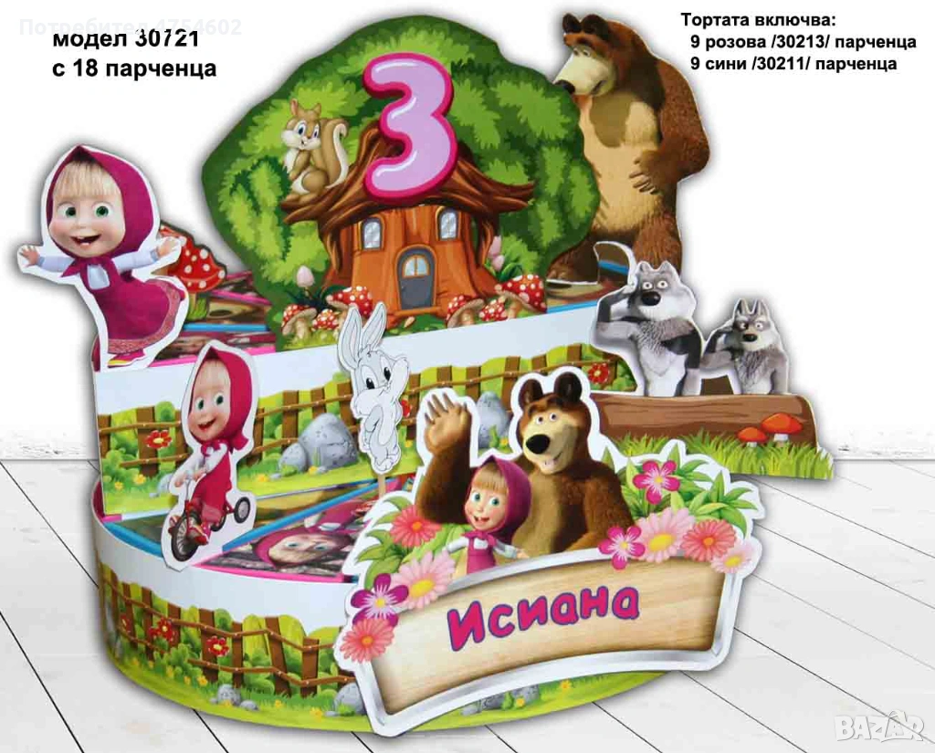 Картонена торта на тема "Маша и мечока" → Обява 53708629