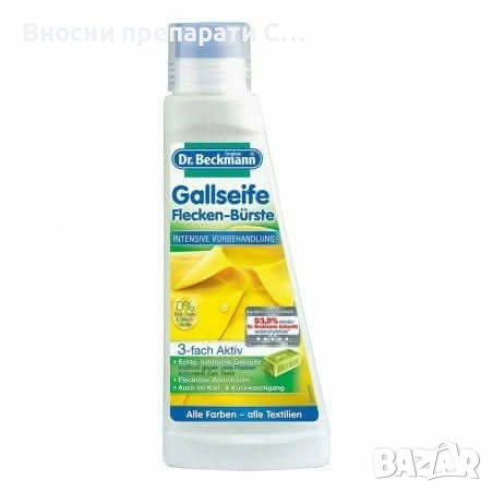 Препаратът за премахване на петна Dr. Beckmann с четка премахва дори най-упоритите петна бързо и надеждно, благодарение на силата на натурален жлъчен сапун,