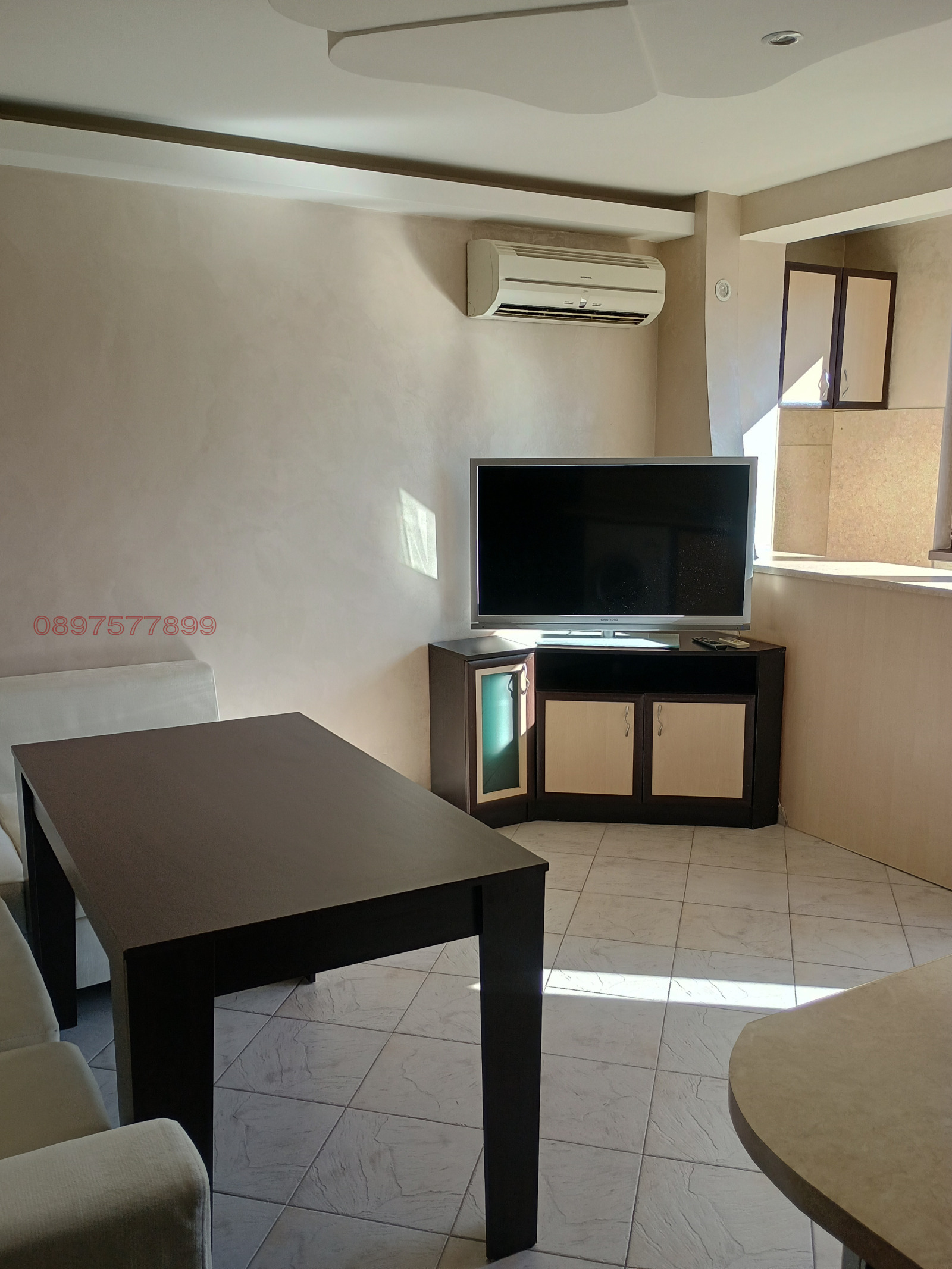 Предлага се под наем напълно обзаведен апартамент 63кв.м., чиста площ, състоящ се от 2 спални, кухня с трапезария, баня с тоалет, коридор и тераса на кухнята и едната спалня. В кухнята бяла техника- климатик, печка, пералня, хладилник, миална машина. Отоплението е на ТЕЦ, изцяло южен и среден апартамент, изключително топъл. Контролиран достъп на входа и СОТ в апартамента. Не се допускат домашни любимци. Моля, агенции да не звънят!