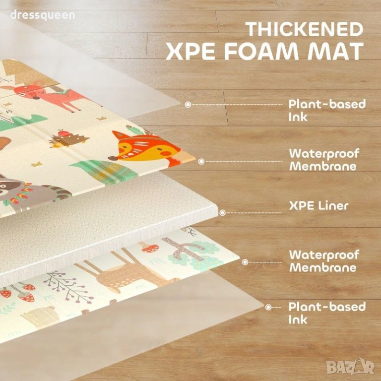 Материалът от XPE пяна е мек на допир, но същевременно издръжлив, като осигурява необходимата дебелина от 0.8 см за комфорт.