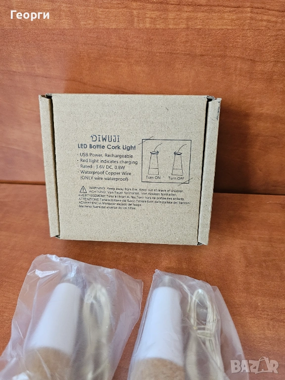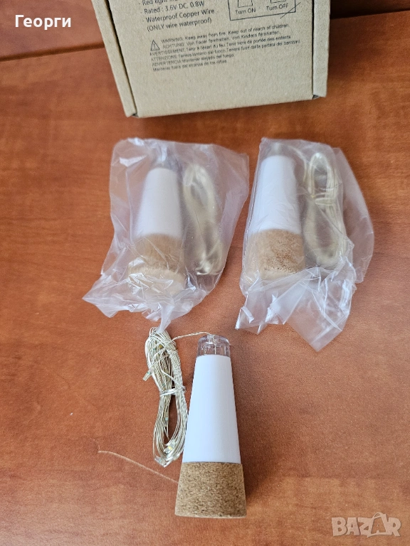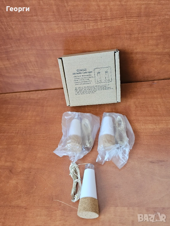 светеща тапа за бутилка с LED гирлянд, марка DIWUJI. Тези устройства са предназначени да превръщат празни стъклени бутилки в декоративни лампи, създавайки уютна атмосфера.