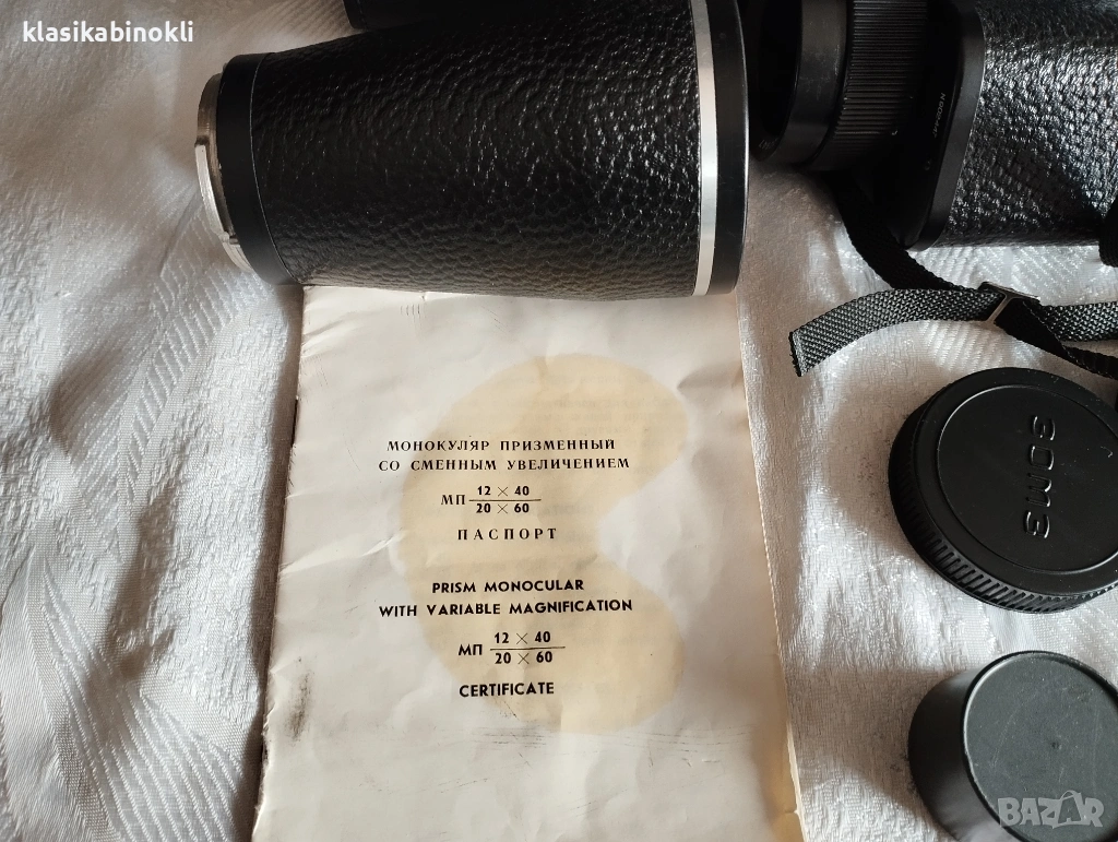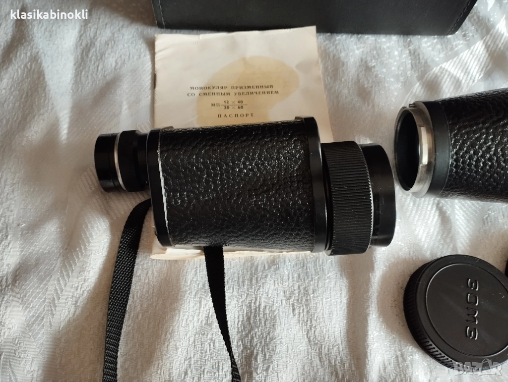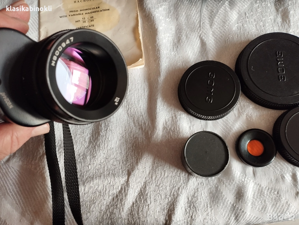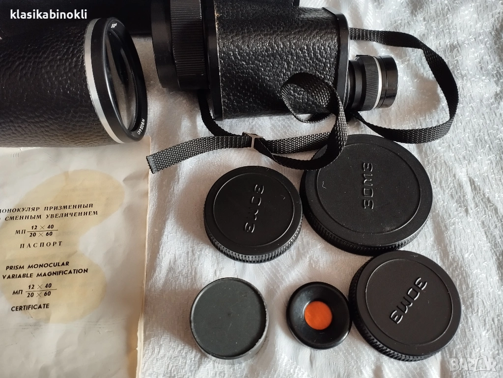 Монокълът е със сменяеми обективи --12х40 и 20х60