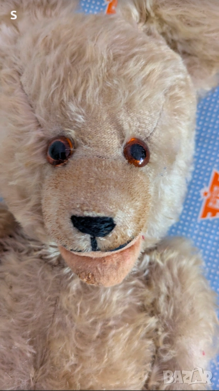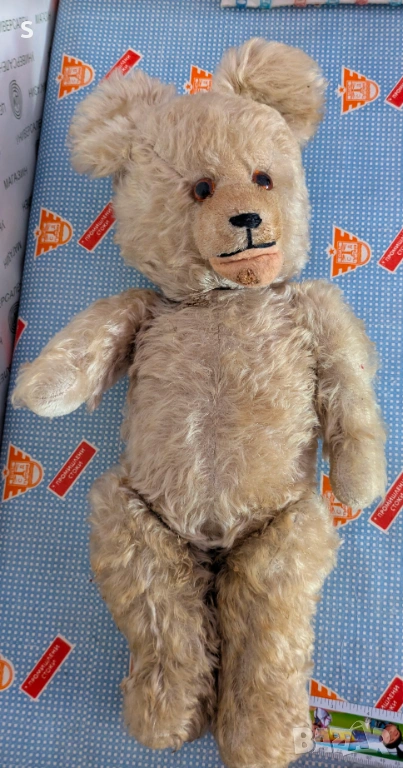 Съветска играчка от края на 40-те началото на 50-те год. със стъклени очи. Големина на мечето е 42 см. Снимките са част от описанието.