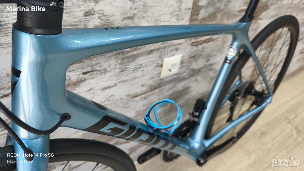 карбонов шосеен велосипед Giant TCR Pro 1 Disc, модел 2023 година, размер M, в перфектно техническо и визуално състояние.