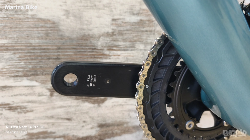4. Курбел - Shimano 105 R7100, 172.5 мм дължина, 50/34 зъба, дребно одраскване по паяка от паднала верига ;
