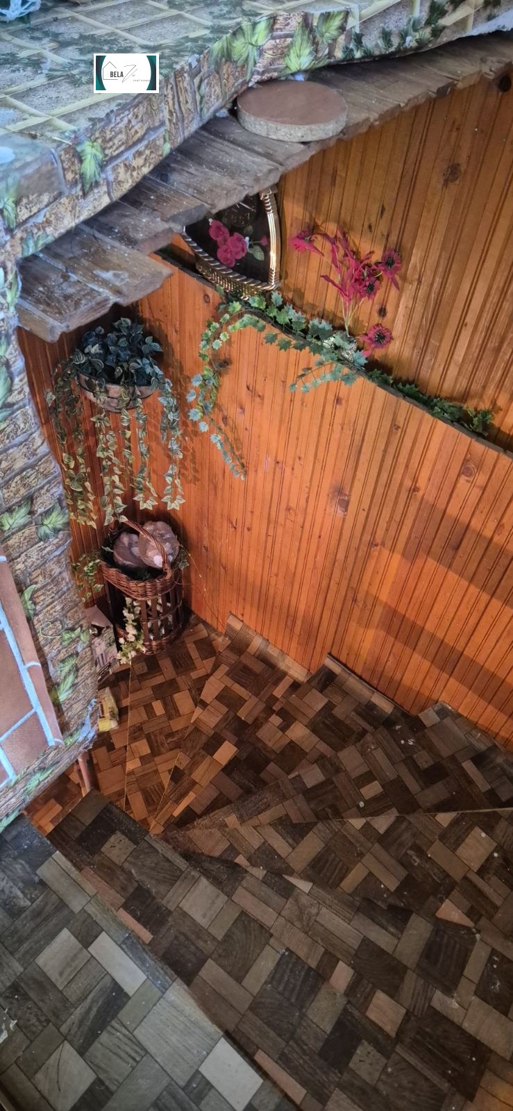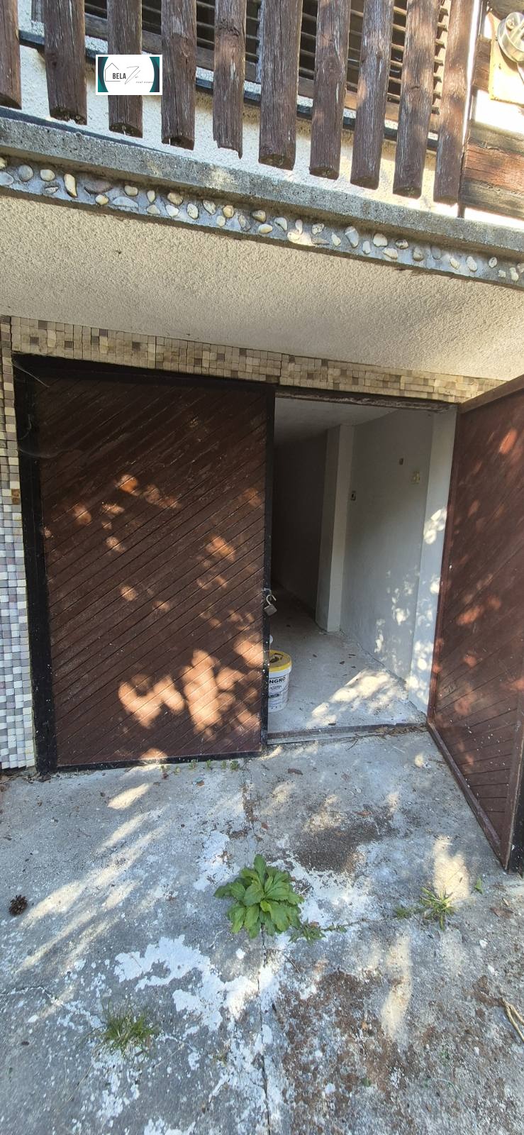 Имотът разполага с гараж и преход към ремонтирано помещение, подходящо за мазе или традиционна механа. Пред входа ще откриете лятна кухня с баня идеално място за летни вечери и гости.