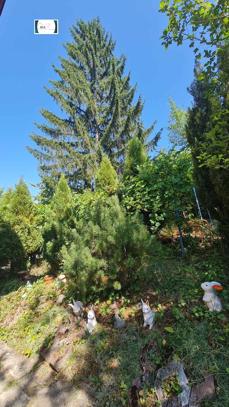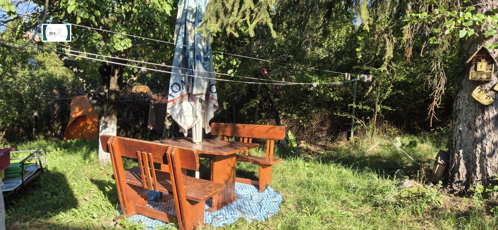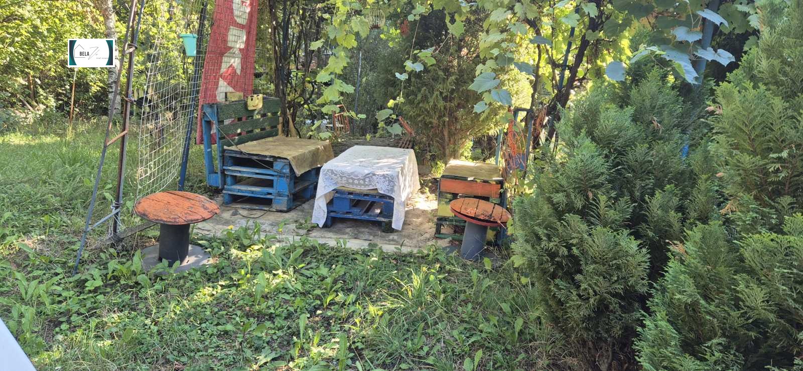 В дворa са обособени няколко кътчета за отдих, където може да се наслаждавате на спокойствие и зеленина. Има и допълнителна складова постройка.