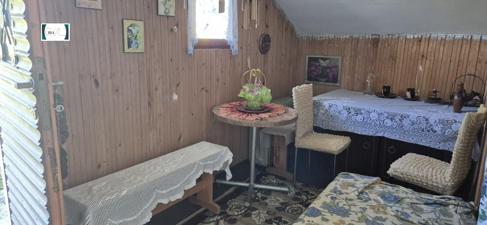 Агенция БЕЛА ВИ предлага за продажба уютна двуетажна къща в с. Жедна със застроена площ от 36 кв.м на етаж и РЗП -72кв.м Първи етаж се състои от две светли стаи с обща тераса . Вити,дървени стълби водят до втори етаж ,състоящ се от три стаи ,две тераси от които се открива красива ,панорамна гледка.