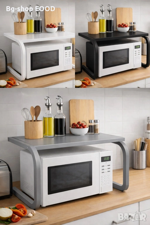 Стойка за микровълнова фурна – 3 цвята (Бял / Черен / Сив) – Метална, до 25 кг