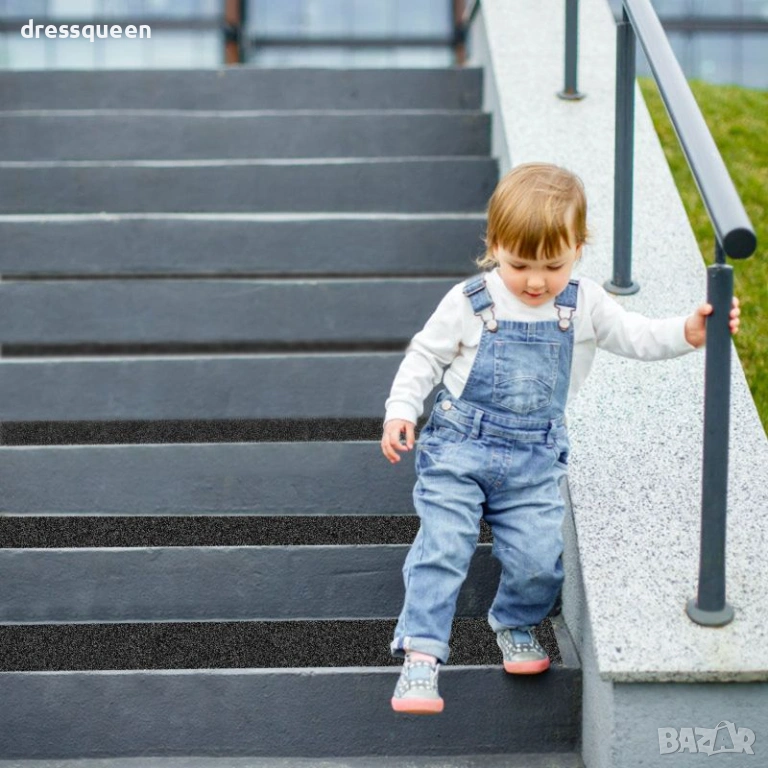 Търсите лесен и ефективен начин за обезопасяване на хлъзгави повърхности? Нашите самозалепващи противоплъзгащи ленти са Ready-to-use – просто отрежете, отлепете и залепете. Снабдени със силно акрилно лепило, тези черни ленти прилепват мигновено към различни настилки. Комплектът съдържа 10 броя ленти (10 см ширина х 76 см дължина), осигуряващи пълно покритие на стандартни стълбища. Благодарение на комбинацията от PVC и PET материали, продуктът предлага изключителна издръжливост и термоустойчивост, запазвайки абразивните си свойства дори при интензивно натоварване.