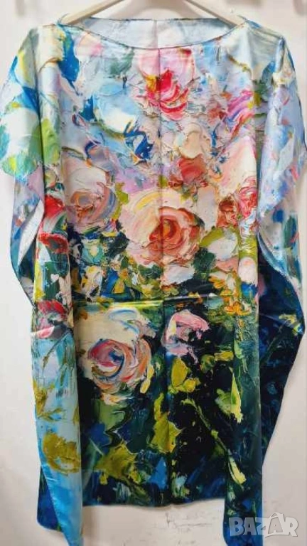 С размери 90 х 90 см, туниката предлага свободно падане и комфорт при носене. Подходяща е за различни типове фигури и осигурява лекота и свобода на движенията дори в най-горещите дни.