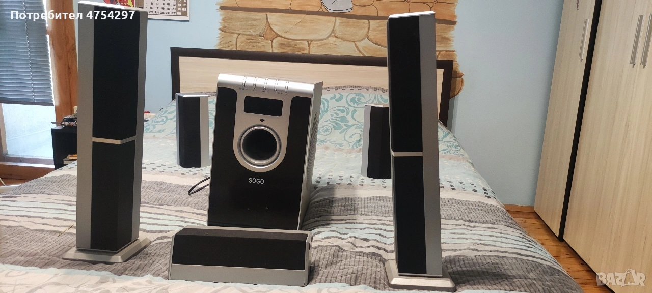 Продавам система за домашно кино,активен субуфер с вграден усилвател и тунер ,5 сателитни тонколони ,оригинално дистанционно !