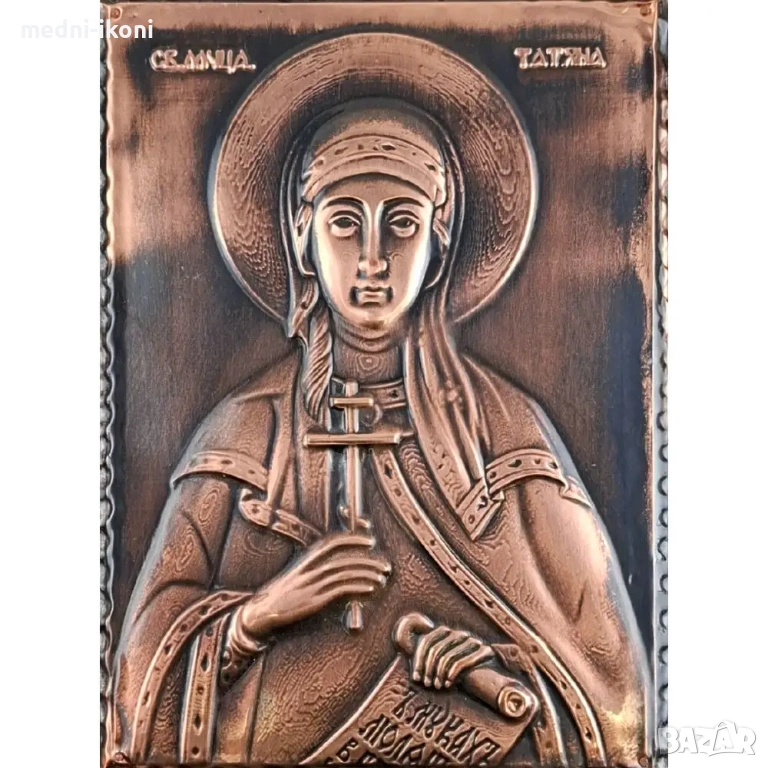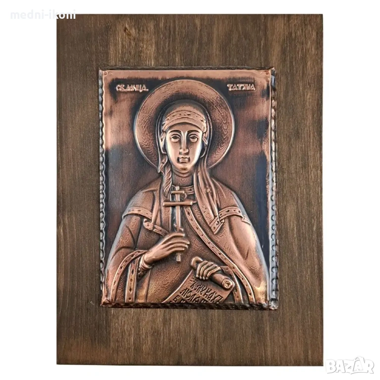 Сложена е върху дъска от липа, която е байцвана в цвят "орех". Тази икона е художествена репродукция на средновековна православна икона. На нея е изобразена Света Татяна, която е раннохристиянска мъченица, живяла в Римската империя. Родена в богато семейство, което криело християнската си вяра, тя поема пътя на целомъдрието още от дете. Времената, в които живее я подлагат на постоянни изпитания и страдания, но със силата Божия, тя успява да се пребори с всичко. Покровителка е на студентите, учащите и помага на всички вярващи.