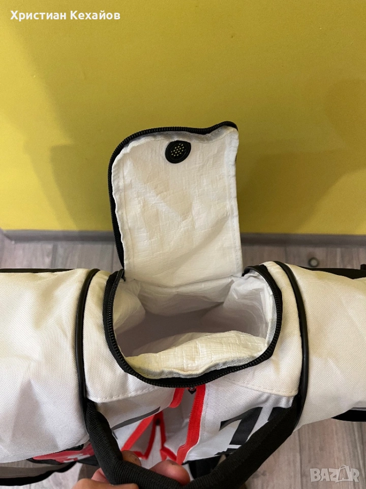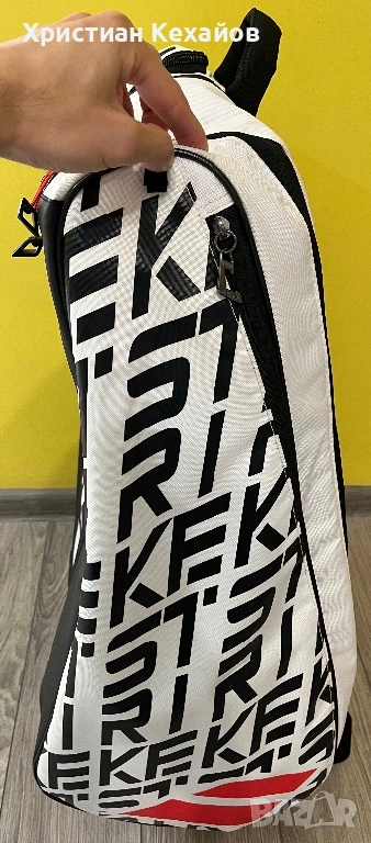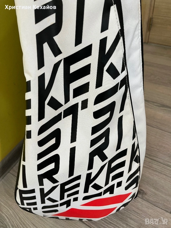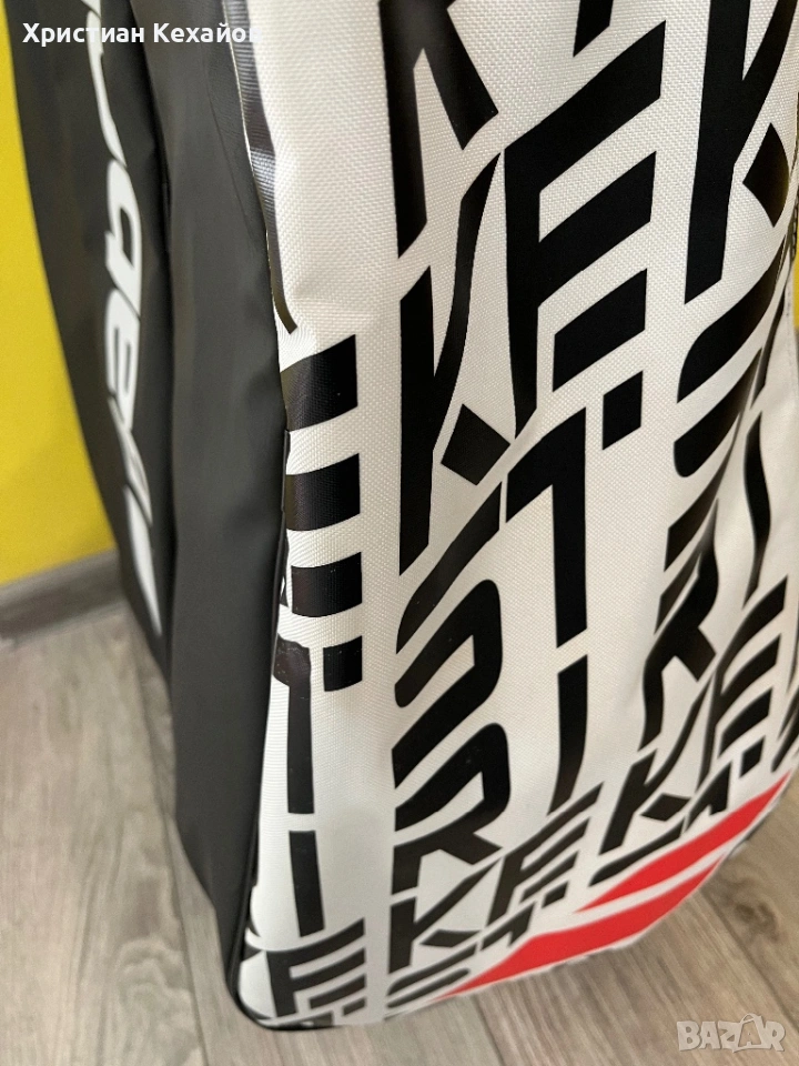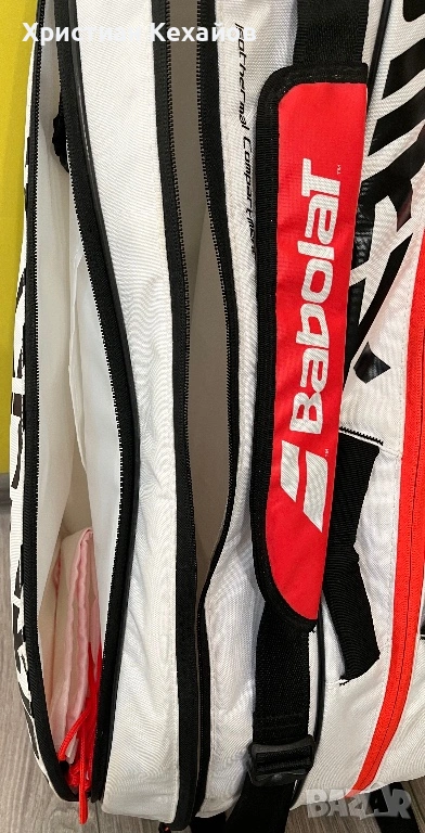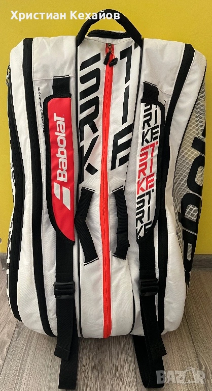 Продавам много запазен(като нов) сак за тенис Babolat Pure Strike! Чантата е с леки пръски от бяла боя(материал), но са много минимални и почти незабележими на снимки 5 и 6. Цената е съобразена с това! Изпращам с Еконт/Спиди с опция “Преглед”. Разгледайте и другите ми обяви!