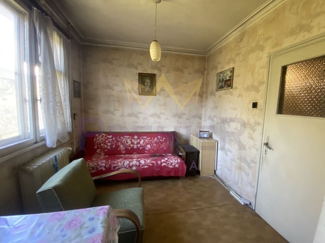Имотът е разположен в тухлена сграда от 60-те години която е част от Стара София. В застроена площ от 60 кв.м. са разпределени входно антре с коридор, просторна дневна/стая, трапезария със свод към кухня, санитарно помещение и балкон. Апартаментът е ситуиран на етаж 4 от 4 с изложение юг-запад. Отоплението е превидено на ТЕЦ. Към имота има прилежащо мазе 6,12 кв.м. и таван 3,14 кв.м. По желание на бъдещи собственици, имотът позволява с малка реконстриция да бъде обособено в дневна с кухненски бокс, една просторна спалня и санитарно помещение.