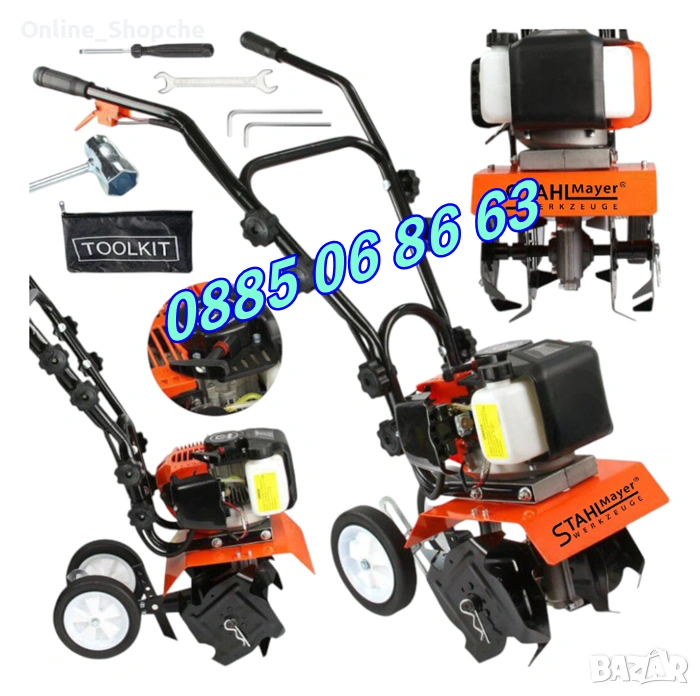 Бензиновата мотофреза е удобно и мощно средство за обработване на малки и средно големи селскостопански площи като лозя, зеленчукови градини, овошни градини и други. Мотофрезата, или още наречена Мотокултиватор е с обем на двигателя 74 куб. С помощта на бензиновата мотофреза може да орете, фрезовате и обръщате земеделски площи, като настройката на дълбочината и ширината на обработване може прецизно да се настройва в зависимост от личните ви нужди.