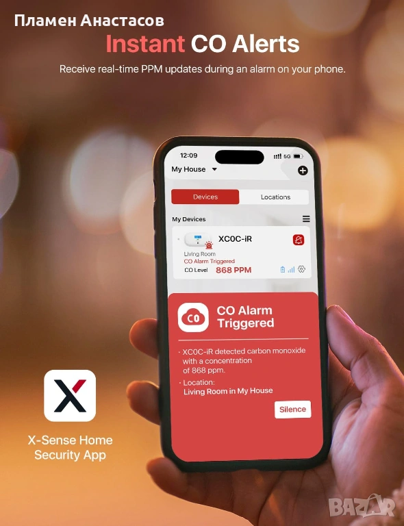 X-Sense Smart Carbon Monoxide Detector XC0C-iR е интелигентен детектор за въглероден оксид (CO), създаден да осигури надеждна защита за дома или офиса. Устройството следи нивата на въглероден оксид във въздуха и предупреждава своевременно при наличие на опасна концентрация.