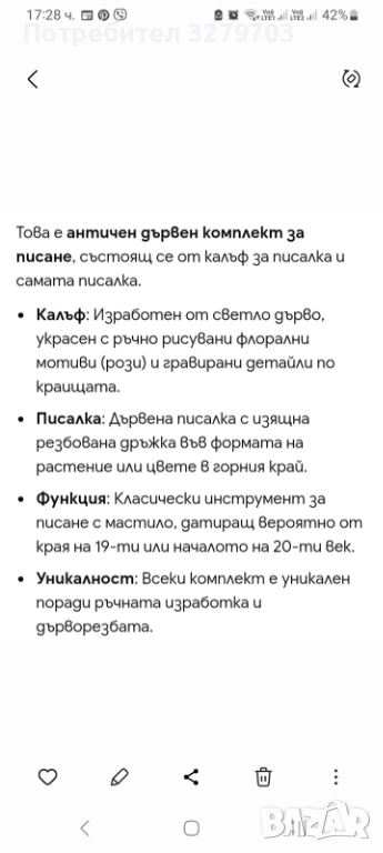 Стара писалка ,уникална изработка от фина дърворезба и антично преспапие от масивно стъкло, снимка 1 - Антикварни и старинни предмети - 53710447 Стара писалка ,уникална изработка от фина дърворезба и антично преспапие от масивно стъкло, снимка 2 - Антикварни и старинни предмети - 53710447 Стара писалка ,уникална изработка от фина дърворезба и антично преспапие от масивно стъкло, снимка 3 - Антикварни и старинни предмети - 53710447 Стара писалка ,уникална изработка от фина дърворезба и антично преспапие от масивно стъкло, снимка 4 - Антикварни и старинни предмети - 53710447 Стара писалка ,уникална изработка от фина дърворезба и антично преспапие от масивно стъкло, снимка 5 - Антикварни и старинни предмети - 53710447 Стара писалка ,уникална изработка от фина дърворезба и антично преспапие от масивно стъкло, снимка 6 - Антикварни и старинни предмети - 53710447 1/6