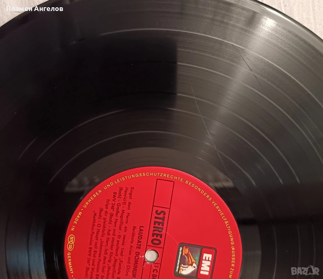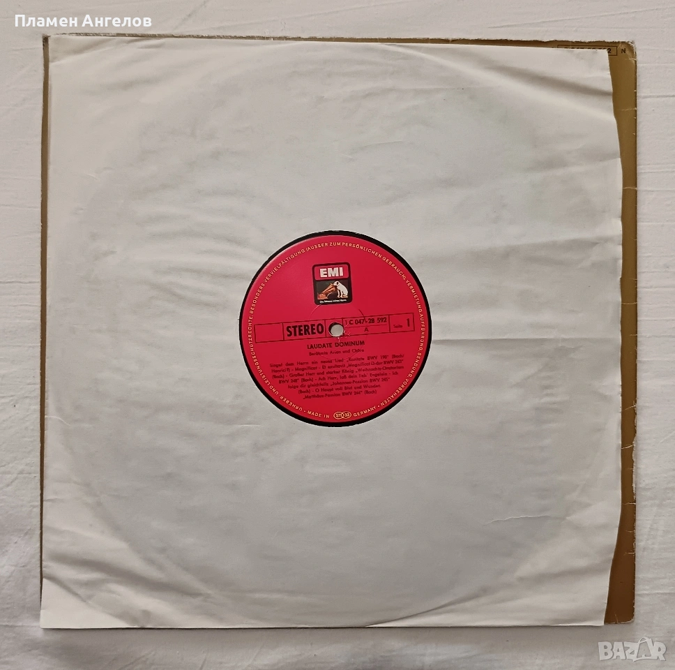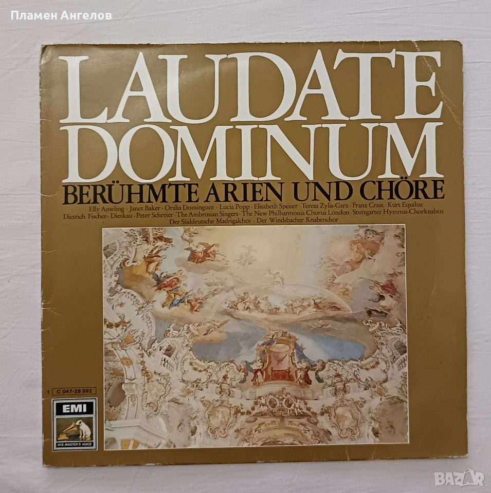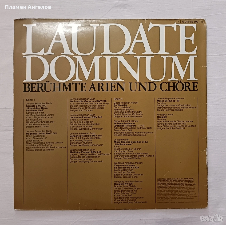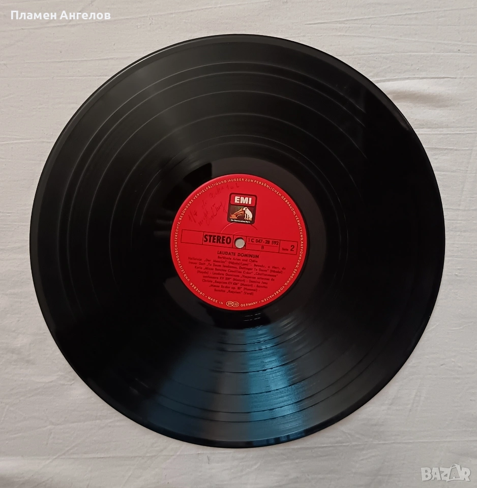 Грамофонна ванилова плоча "Laudate Dominum" издател Еми. Каталожен номер 1С047-28-592.Включва произведения на Бах, Хендел, Моцарт, Верди, Хумел. Цената е съобразена със състоянието на плочата.
