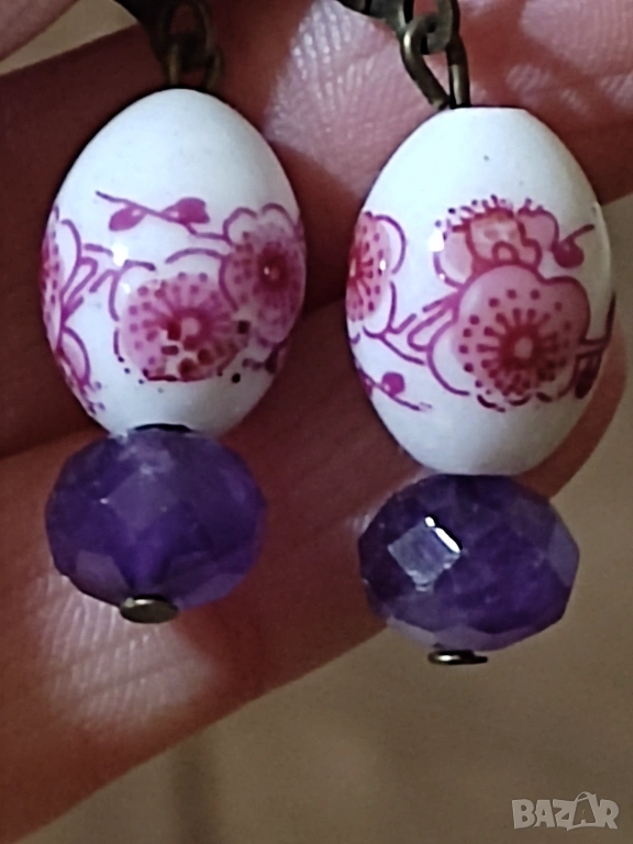 Обеци с аметист и керамика → Обява 53710621