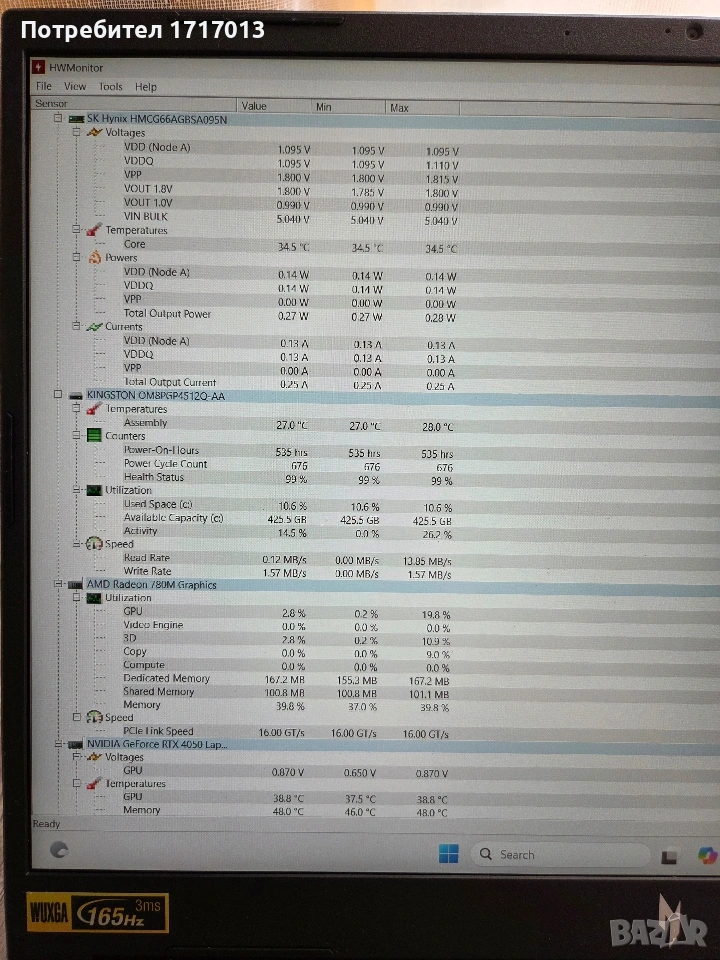 Acer Nitro V16 8845hs / rtx 4050 6gb / 16 gb / 512gb ssd → Обява 53710972