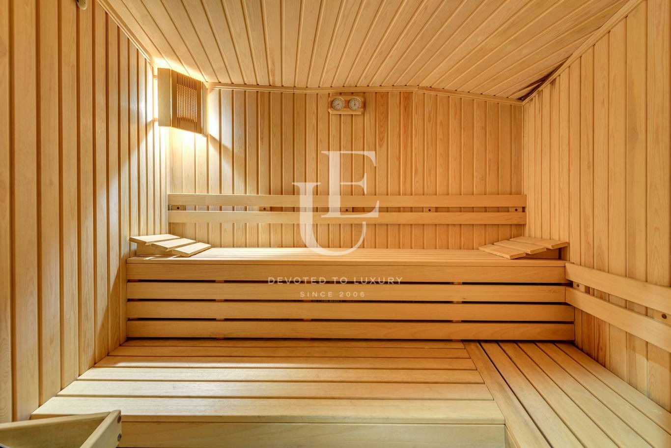 Луксозните настилки са комбинация от естествен камък и висок клас дървен паркет. А настилките и стените в баните са от специален вулканичен материал, гарантиращ уникална визия и дълготрайност.