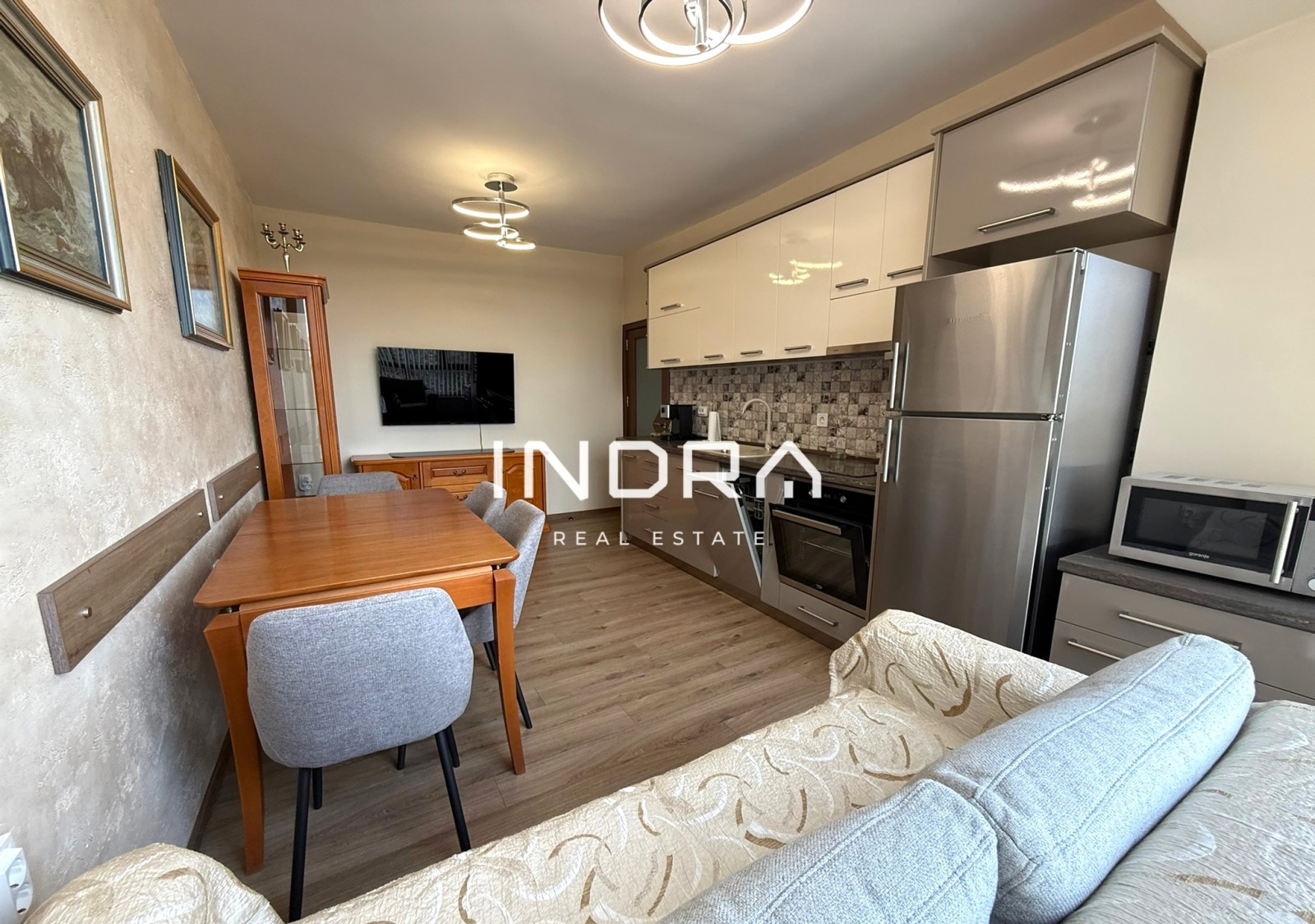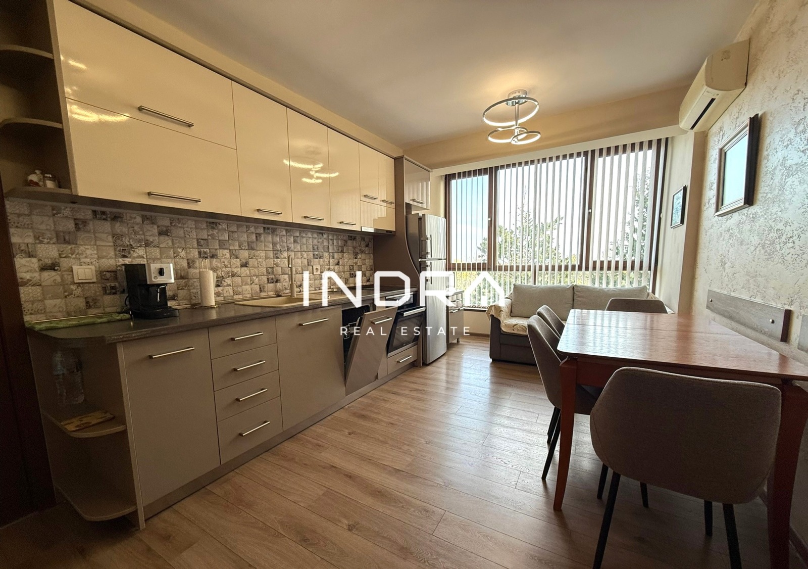 Дневна с напълно оборудвана кухня, включително съдомиялна и висок клас уреди
