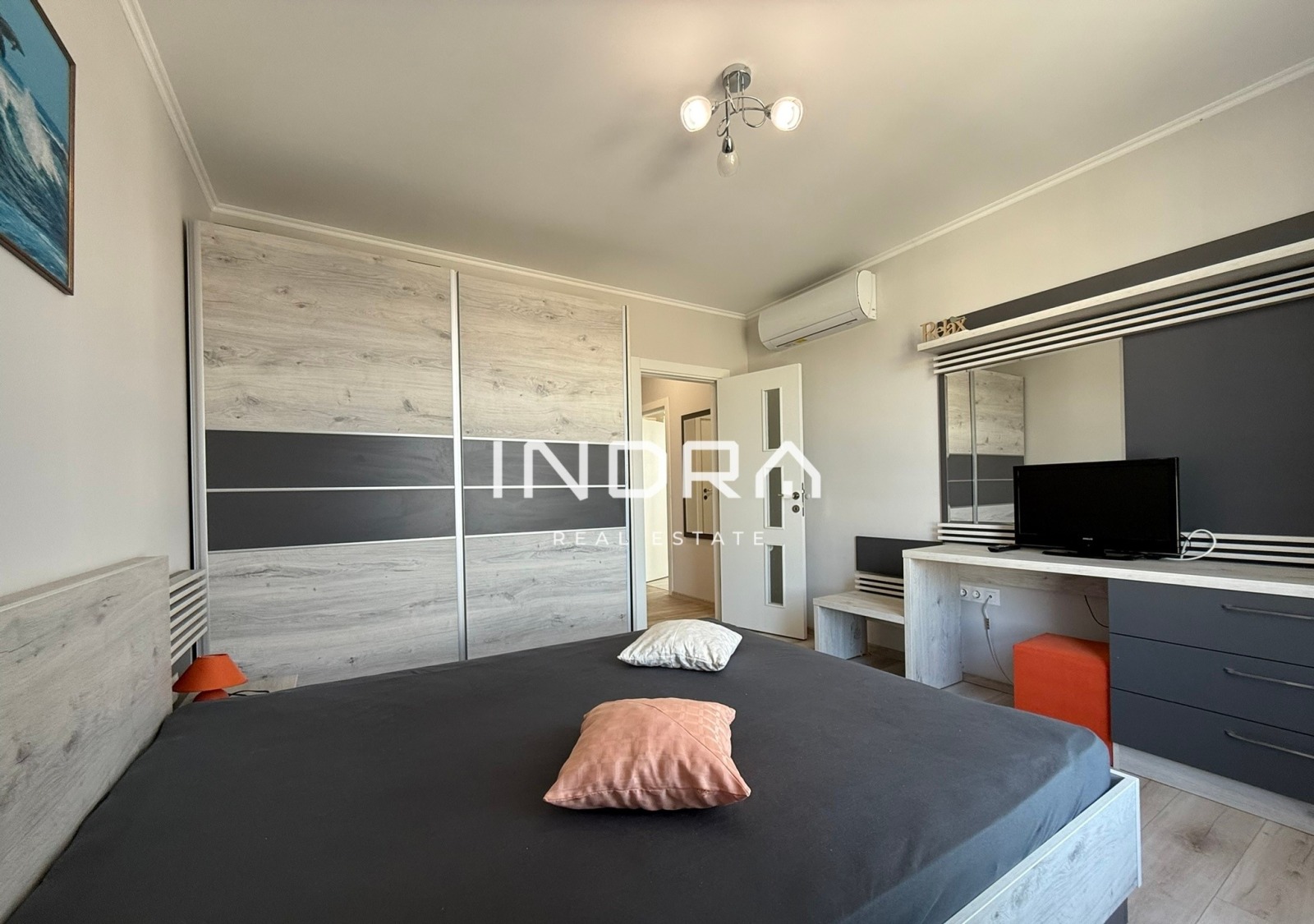 Предлагаме под наем напълно обзаведен тристаен апартамент с площ от 75 кв.м, разположен в нова бутикова кооперация с асансьор, контрол на достъпа и отлично поддържани общи части. Сградата се намира само на крачка от морето и плаж Диди Бийч в кв. Сарафово. Жилището е с югозападно изложение и морска гледка от терасата. На разположение на наемателите има и басейн. Ключ в офиса.