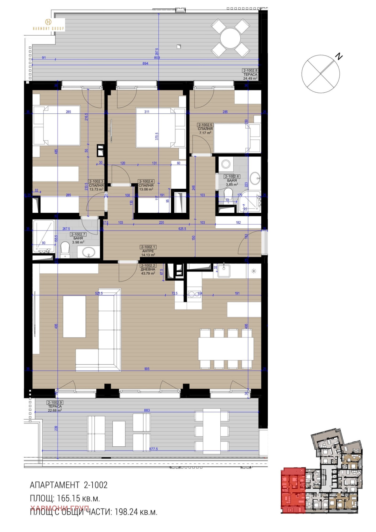 Сграда 2, ет. 10, ап. 2-1002.