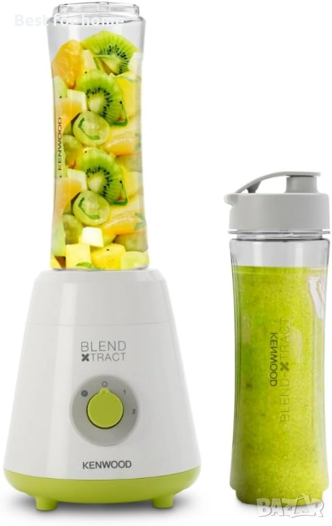 KENWOOD Персонален блендер 300W Смути блендер/смути машина с бутилка и капак Tritan Smoothie2Go 570 мл и 570 мл, функция за раздробяване на лед SMP060WG