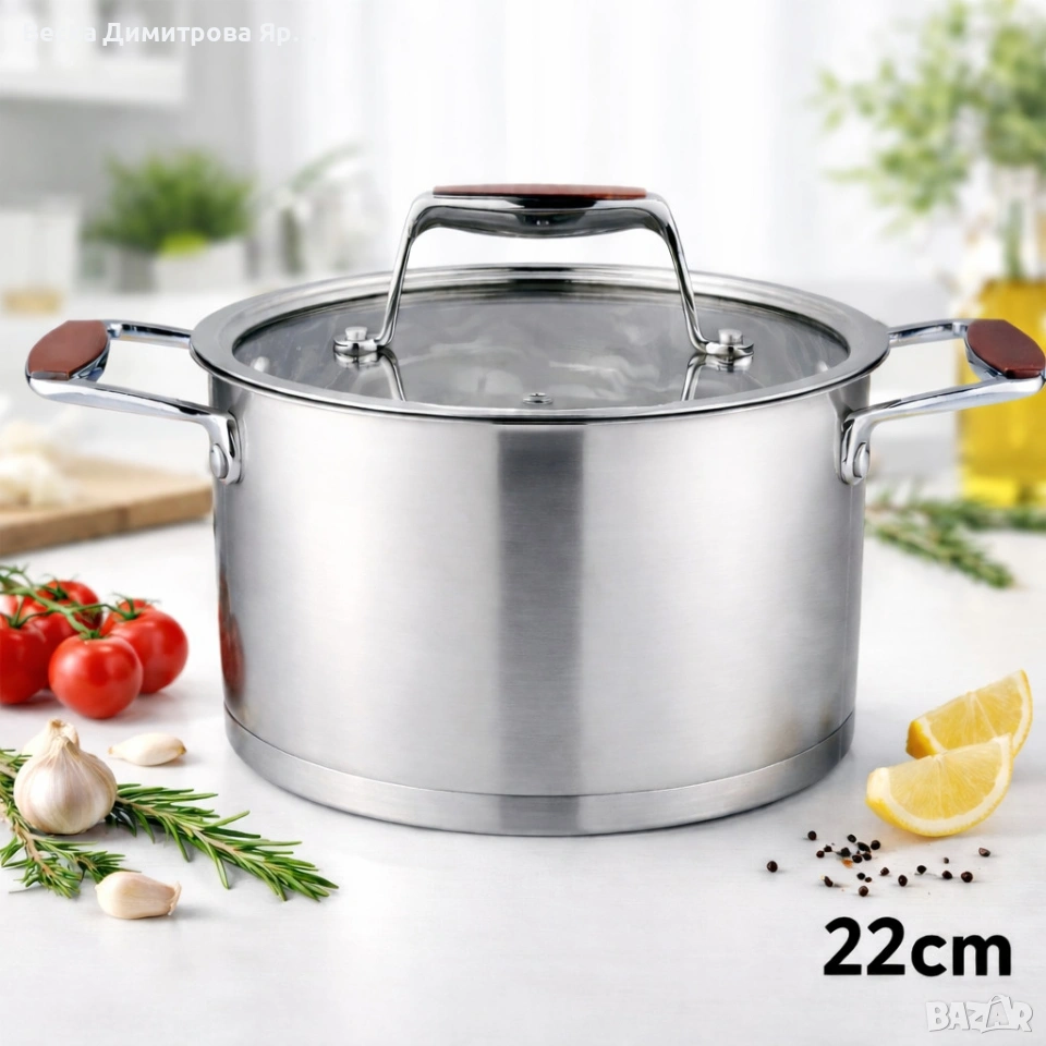 Материал: Неръждаема стомана 18/10 (AISI 304) Дъно: Многослойно термо дъно за равномерно разпределение на топлината Капак: Закалено стъкло с отвор за пара Дръжки: Нитовани дръжки от неръждаема стомана Съвместимост: Газ, стъклокерамика, електрически, халогенни, индукция Съдържание: Мерителна скала, подходяща за съдомиялна машина Размери и вместимост: 18 см / 2.6 л, 20 см / 3.6 л, 22 см / 4.7 л Цвят: Инокс Употреба: Само за домашна употреба