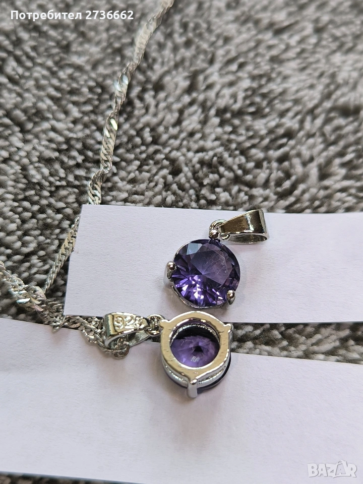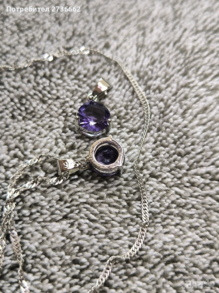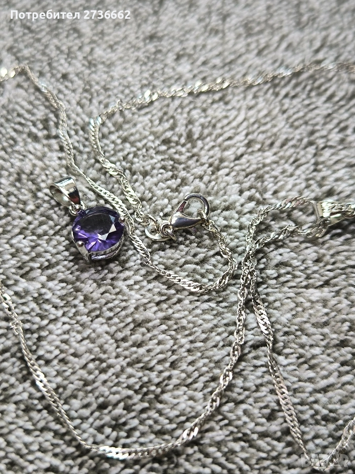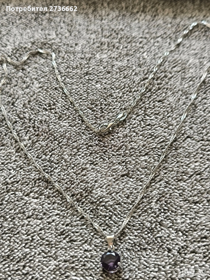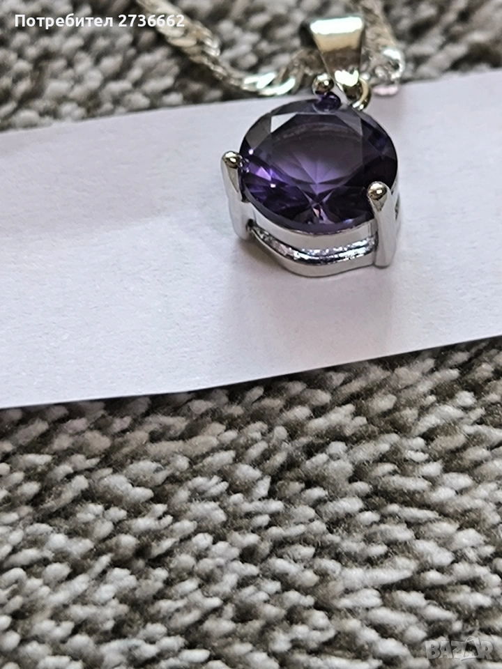 Сребърно колие с лилав цирконии → Обява 53711521