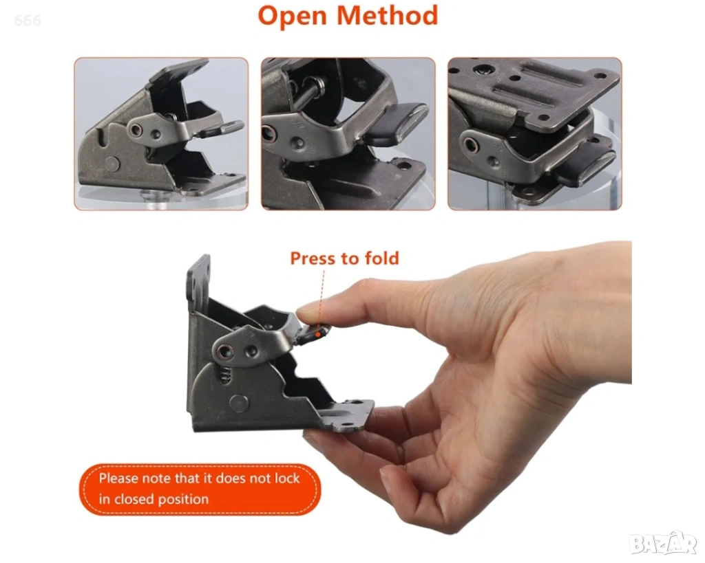 Автоматично заключване: след като кракът е сгънат, опората се заключва автоматично. Всяка скоба се доставя с 10 винта.